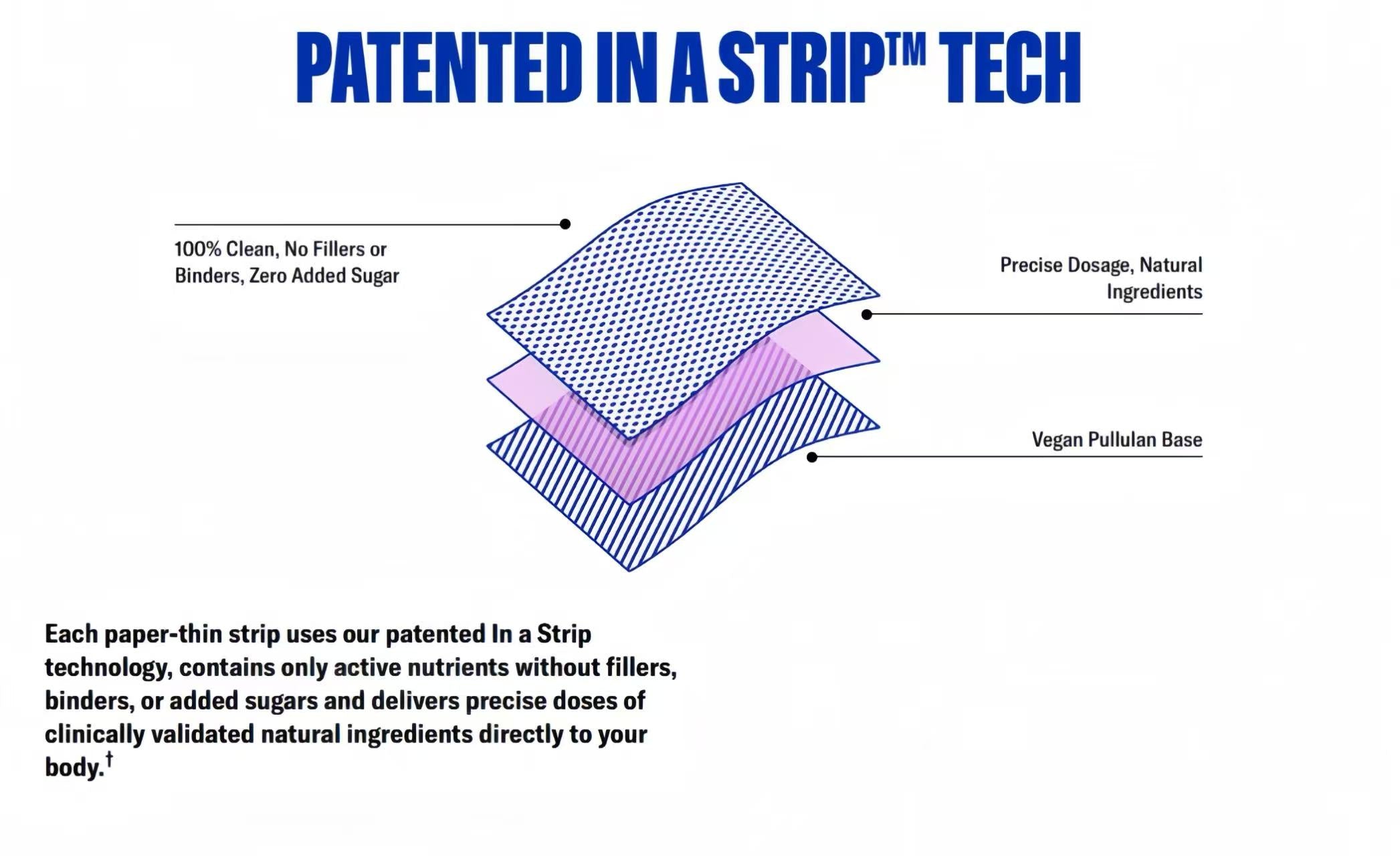 The easiest, yummiest way to take your supplements. No water, no swallowing just peel open the pouch, place the strip on your tongue, and let it dissolve.